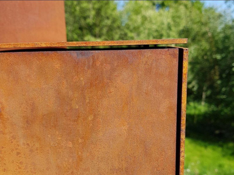 Het weervast cortenstaal roest oppervlakkig tot een mooie oranje-rode kleur en zal daarna voor altijd zijn dikte én sterkte behouden. Onder invloed van zon, regen en stookgedrag krijg je een uniek kleurenspel dat met de tijd verandert.