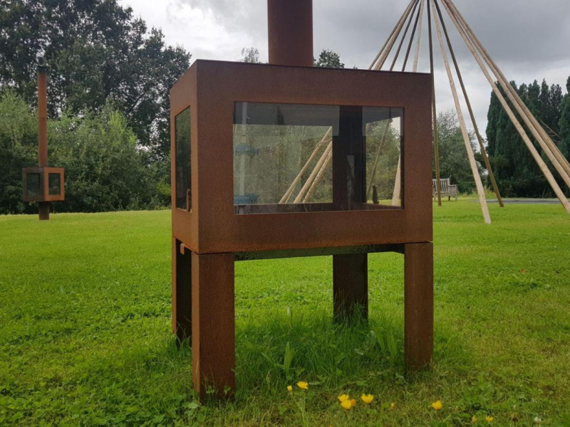 Materiaal: Corten staal, vuurvaste steen, hittebestendig glas